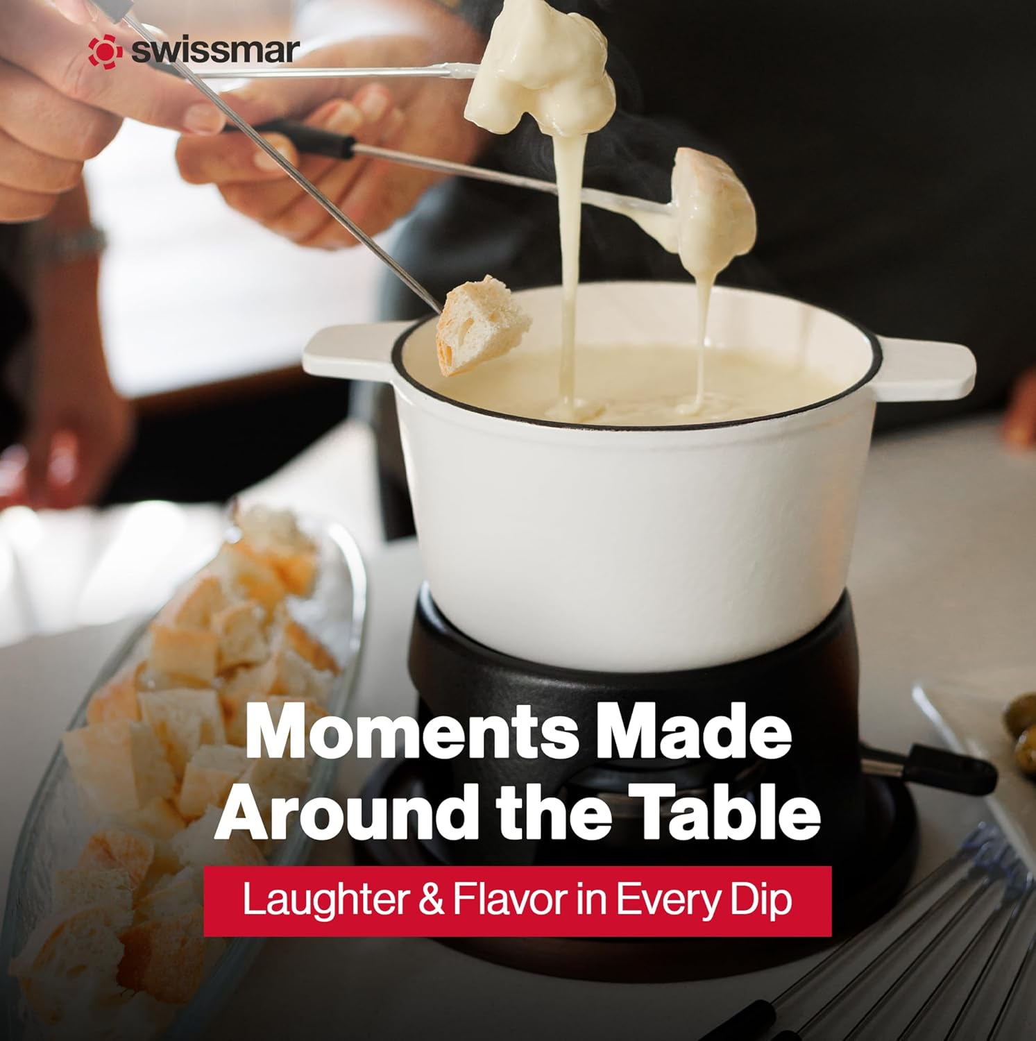 Swissmar Sierra Cast Iron Fondue Set, 1.6 Quart / 1.6 Liter – Perfect for Meat, Cheese, & Chocolate Fondues – Ideal for Family Bonding & Hosting Gifts - 12-Pieces, Matte White