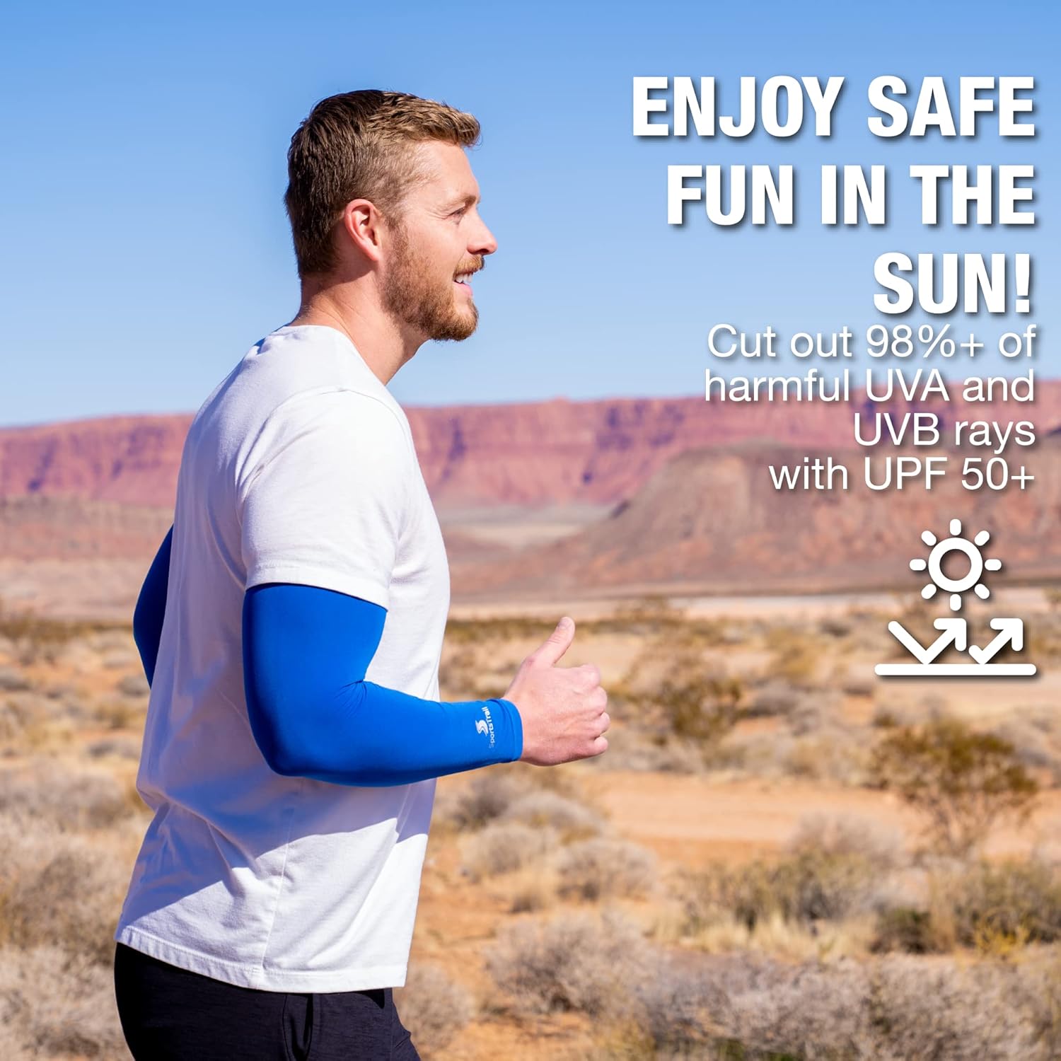 - Superior UPF 50+ premium arm sleeves – our innovative UV sleeves for men and women block over 98% of the sun’s harmful UVA and UVB rays, offering full UPF 50+ coverage. These sun sleeves for men and women are ideal for shielding yourself from the sun on hot days – whether you’re playing golf, basketball, baseball, volleyball, running, or cycling.