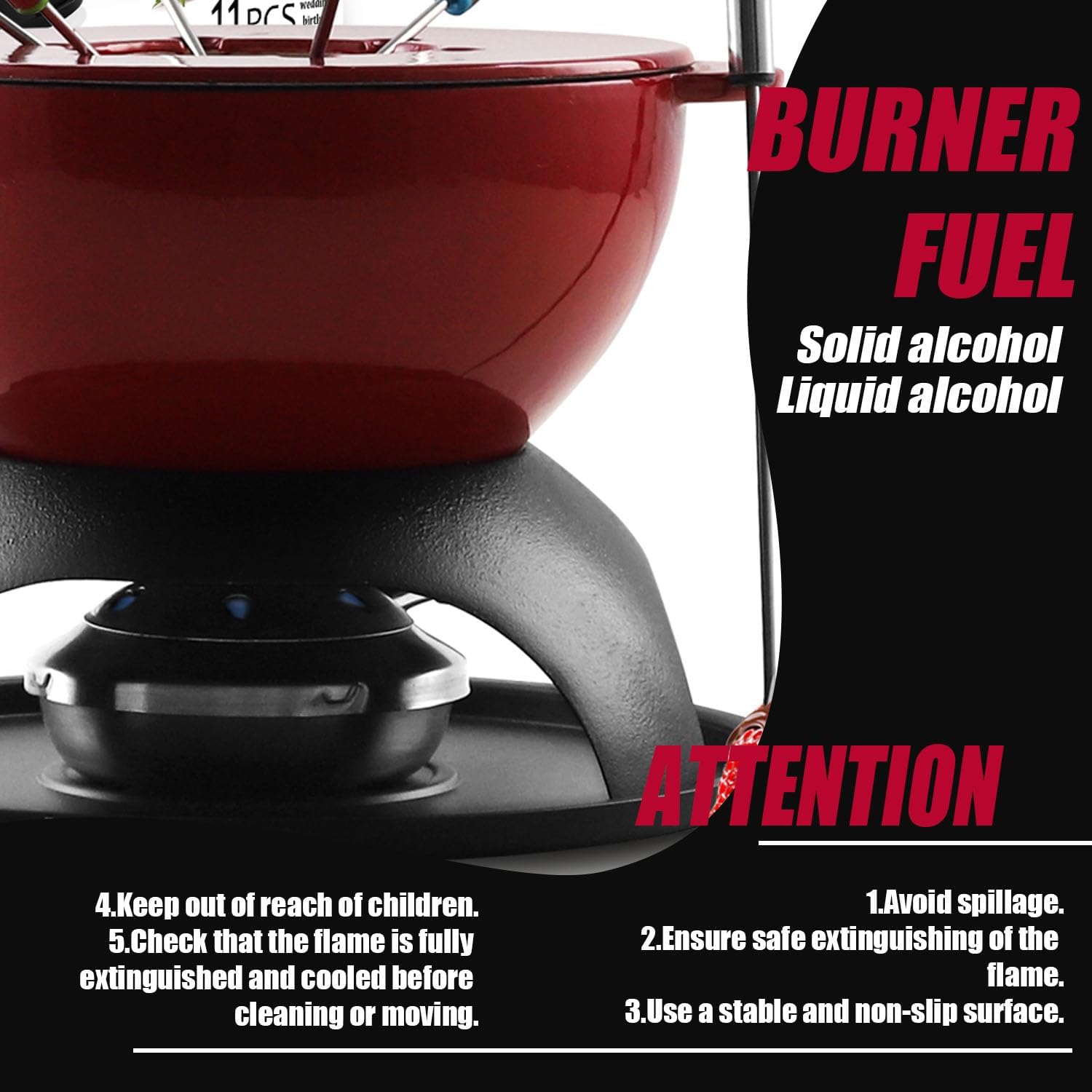 - EXCELLENT HEAT RETENTION & CONTROL: Crafted with durable, high-quality cast iron, our fondue pot ensures perfectly melted cheese and chocolate every time. Its superior heat retention and even distribution keep your fondue warm and delicious. Easily control the flame with a simple turn on the included adjuster for precise heating