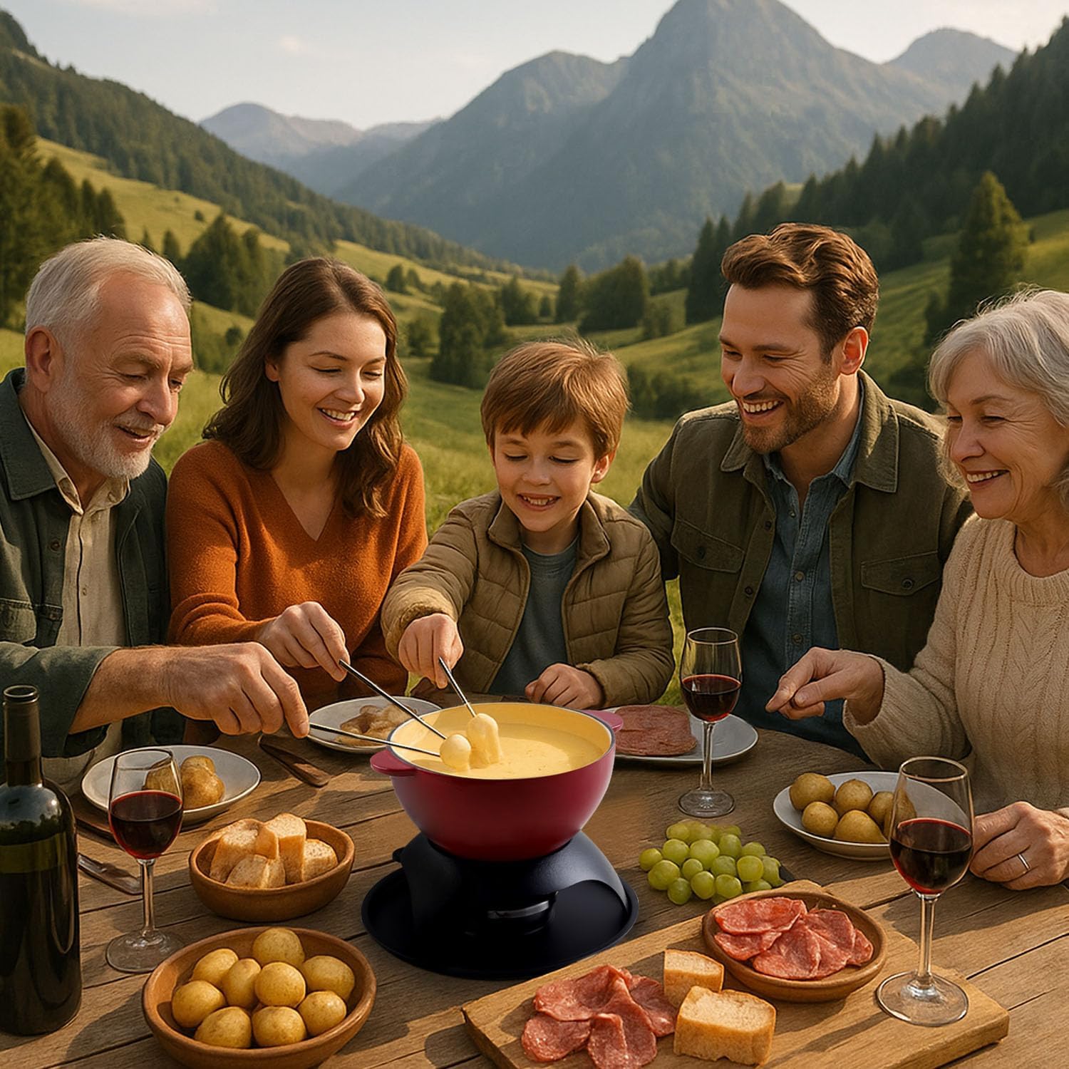 - VERSATILE CAST IRON FONDUE EXPERIENCE: Enjoy a delightful array of cheese and chocolate fondue recipes with our compact 1.26-quart cast iron fondue pot (Dimensions: 8.66" L x 7.28" W x 3.54" H). Perfect for up to 6 people, it's ideal for birthdays, daily use, family gatherings, camping trips, picnics, or any special occasion to share memorable moments with friends and family