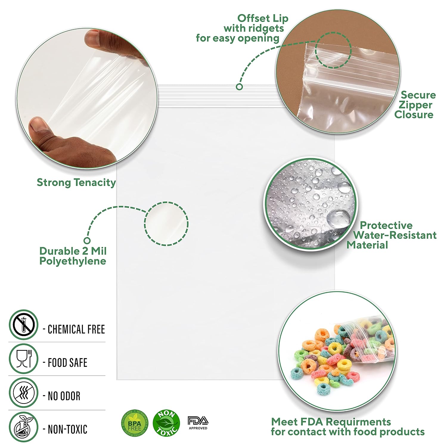 GPI Pack of 500, 12" X 15" Clear Plastic Reclosable Zip Bags - Bulk 2 Mil Thick Strong & Durable Poly Baggies with Resealable Zip Top Lock for Travel, Storage, Packaging & Shipping