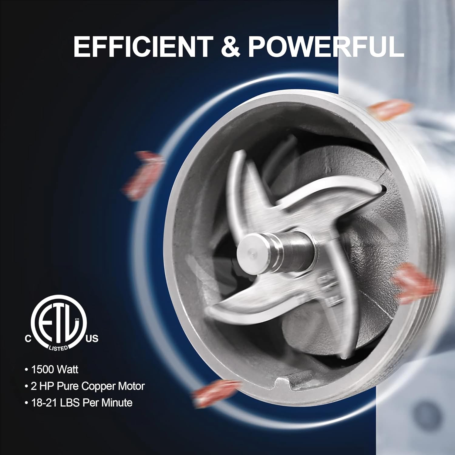 - SAFETY FRIENDLY AND QUALITY CERTIFIED: American Standard Certified: ETL Permanently lubricated induction motor with built-in circuit breaker for safety and reliability. Overheat protection is perfect for frequent use. Non-slip feet for stability and safety while grinding meat.