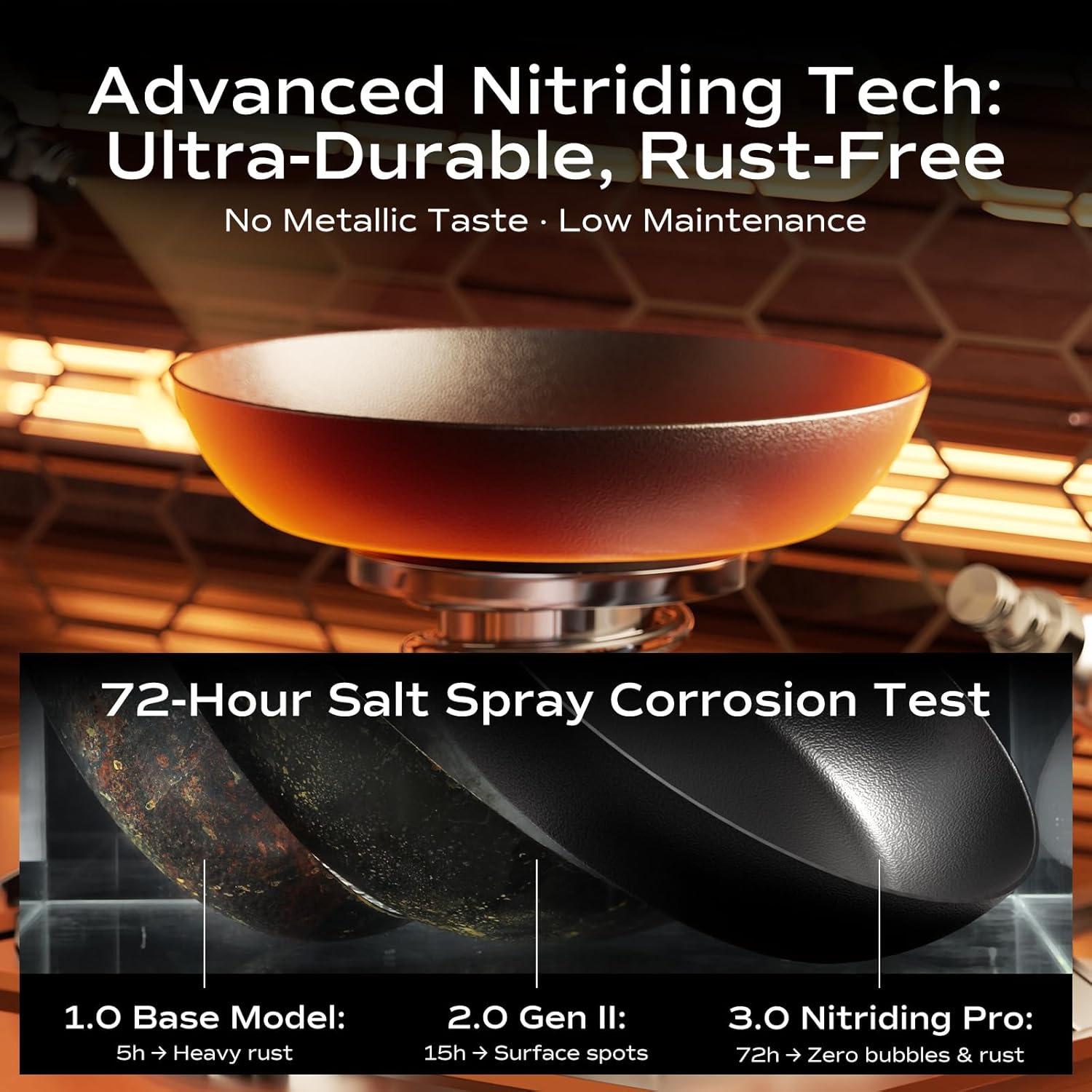 - Ultra-Durable Defense System-----This cooking pan is treated with advanced nitriding to create a rustproof surface that stands up to heavy use. It comes pre-oiled and is ready to go—just rinse, dry, and start cooking!