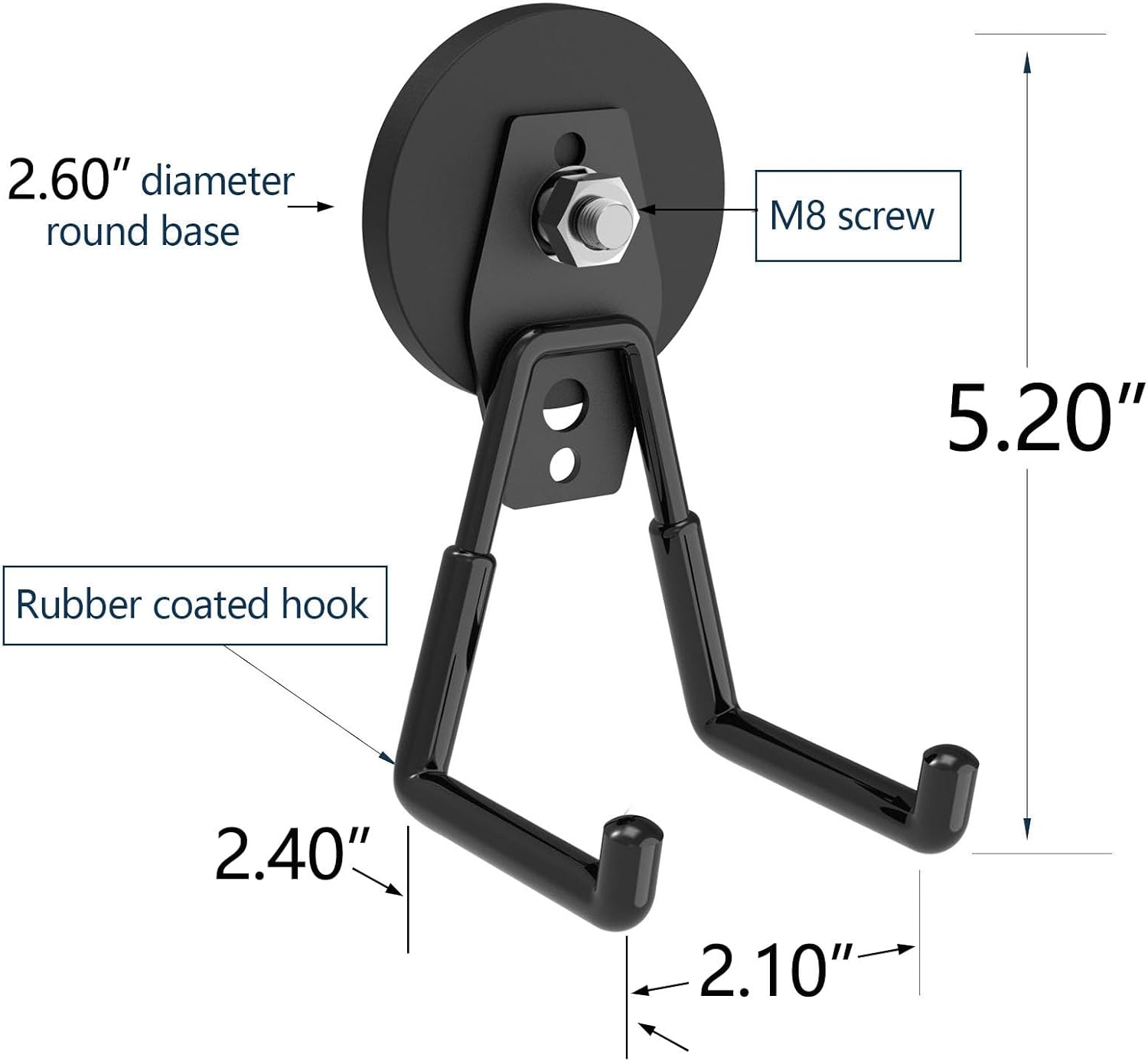 - 【Multiple Use Hooks】This magnet hook includes a robust 2.60-inch magnet base with a threaded bar, nut, spacer, and a PVC coated hook. We put it to the test, and this magnetic hook can securely hold any type of EV charger, one gallons of bottled water, and a variety of garage tools, drills, and toolboxes.